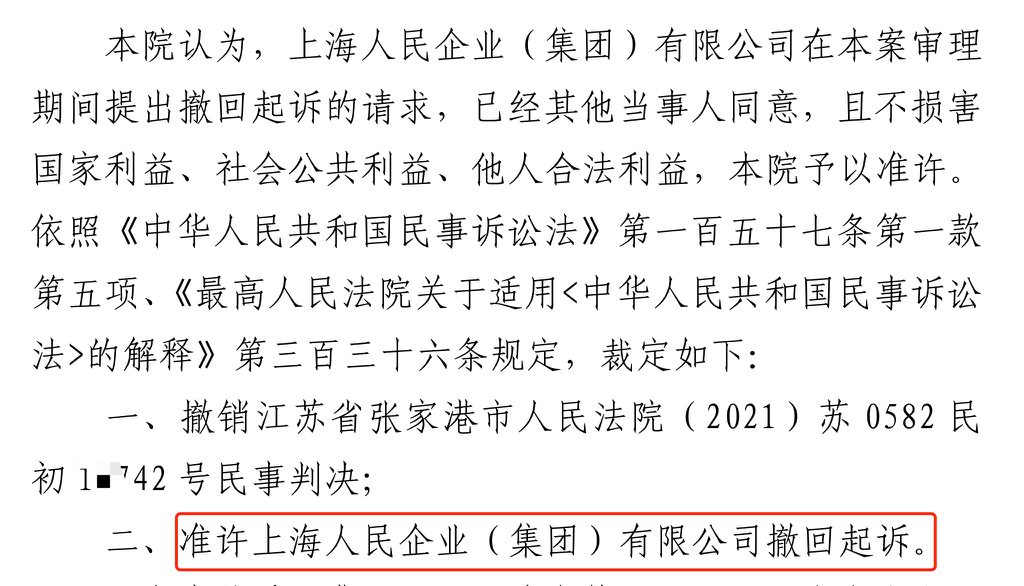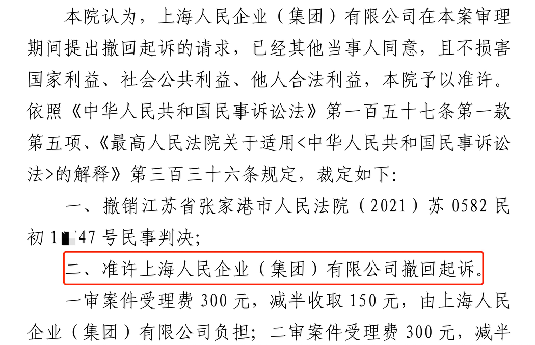 海北胜诉佳讯 | 人民企业系列案苏州六案上海人民公司撤诉