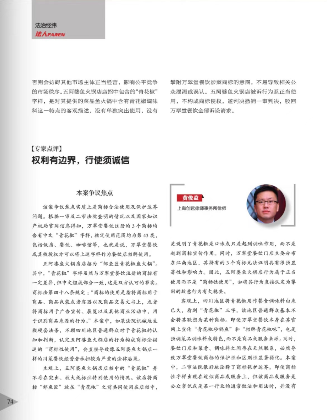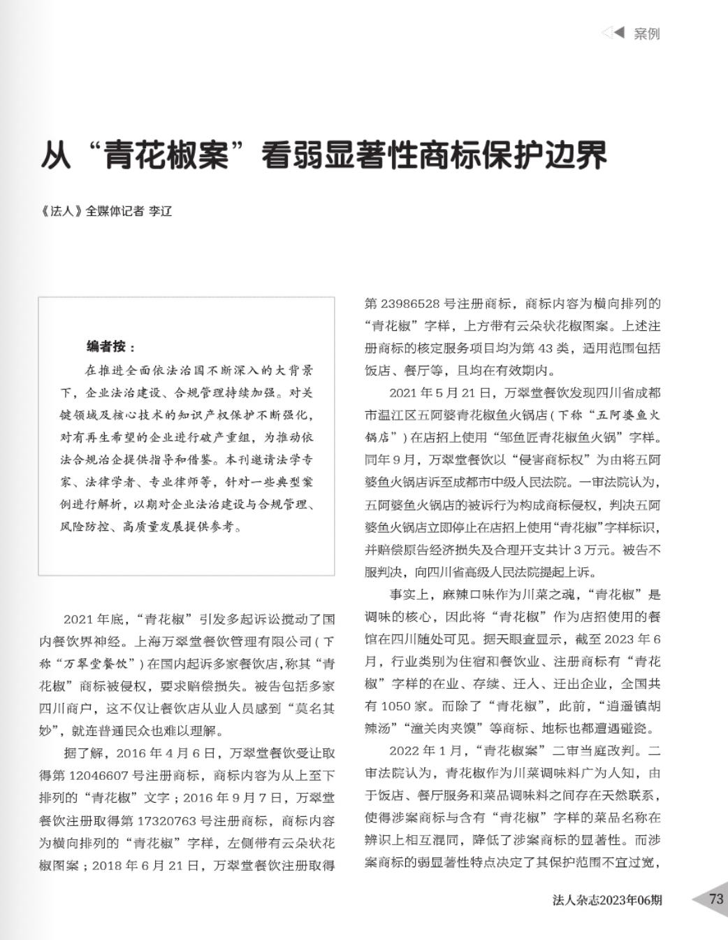 海北辉知简讯 | 辉知队黄俊益律师应“法治日报”旗下杂志邀请,就“青花椒”案发表专家点评